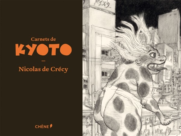 Inspirée par le modèle de la Villa Médicis à Rome, la Villa Kujoyama, dirigée par l’Institut Franco-Japonais du Kansai en association avec l'Institut Français, est une résidence d’artistes située à Kyoto qui accueille des créateurs inscrits dans une démarche professionnelle. Déjà résident de la Maison des auteurs d’Angoulême en 2005 et 2006, Nicolas de Crécy est un habitué de ces lieux d’émulations collectives et multiculturels. Lauréat de la Villa Kujoyama en 2008, il nous livre avec Kyoto un carnet de voyage dans lequel il croque de son trait faussement hésitant si caractéristique, une ville où se mêlent - lieu commun par excellence sur le Japon - modernité et culture millénaire. Les portes de temples zen côtoient les buildings du centre-ville alors que les pins séculaires le disputent à l’enchevêtrement des poteaux électriques. Suivre de Crécy, c’est flâner dans Kyoto en s’attardant, au grè des rencontres, sur un visage, une échoppe, une étudiante ou le menu d’un restaurant. Il y dessine le quotidien comme un photographe prendrait un cliché... En pause longue. Le lecteur connaissant son penchant pour le fantasmagorique ne s’étonnera pas de trouver, ici et là, un yokai ou un oni* surplombant la ville.