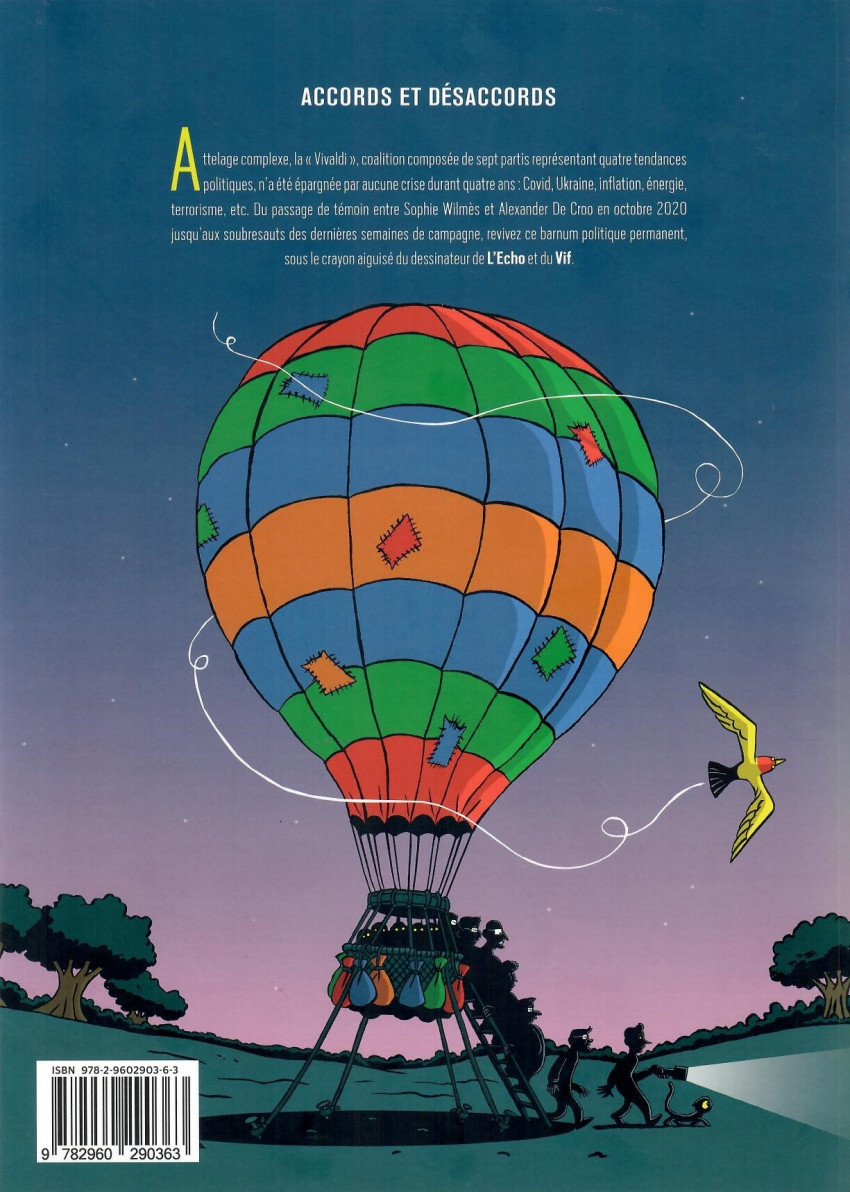 Résumé: Accords et désaccords. Attelage complexe, la « Vivaldi », coalition composée de sept partis représentant quatre tendances politiques, n’a été épargnée par aucune crise durant quatre ans : Covid, Ukraine, inflation, énergie, terrorisme, etc. Du passage de témoin entre Sophie Wilmès et Alexander De Croo en octobre 2020 jusqu’aux soubresauts des dernières semaines de campagne, revivez ce barnum politique permanent, sous le crayon aiguisé du dessinateur de L’Echo et du Vif.