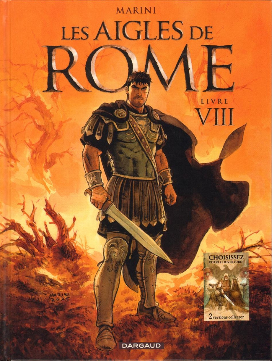 Les Aigles de Rome reviennent pour mettre encore en scène l'affrontement épique entre deux frères ennemis : le Romain Falco et le Gaulois Arminius. Alors que Falco est toujours en quête de son fils et de vengeance après cette séparation cruelle, la guerre s'annonce fratricide, promettant des tensions et des conflits intenses. Le style graphique de Marini est l'un de mes préférés depuis bien longtemps. Il ne faiblit pas en qualité, et ce tome nous offre de magnifiques planches qui rendent hommage à ce péplum avec de très beaux paysages des forêts germaines. Chaque illustration capture l'essence des personnages et des décors, nous immergeant dans l'univers saisissant de la Rome antique. En s’enfonçant dans les contrées germaniques, la série a indéniablement gagné en profondeur. L'auteur s'est efforcé de rester fidèle à une trame historique réelle, mettant en lumière des aspects souvent méconnus de la conquête romaine. Les enjeux narratifs se sont véritablement complexifiés au fur et à mesure, enrichissant l'intrigue et offrant au lecteur une perspective nuancée sur les événements historiques. En effet, il y a des traîtres dans chacun des camps pour ravir le pouvoir ou sauver sa vie. A noter qu'on a le choix en tant que lecteur entre deux couvertures selon qu'on penche pour un frère ou l'autre dans cette guerre. Perso, j'ai pris celle de mon personnage préféré à savoir Falco bien que je puisse reconnaître que l'autre couverture n'a rien à envier. En résumé, Les Aigles de Rome tome 8 est réellement une lecture captivante qui allie habilement une narration riche et un graphisme de très grande qualité. Je recommande vivement ce tome à tous les amateurs d'histoires épiques et de récits historiques, tant il promet une conclusion palpitante à cette saga mémorable avec une véritable montée en tension. Un dernier mot en latin : Vae Victis ! (Malheur aux vaincus).BDGest 2014 - Tous droits réservés