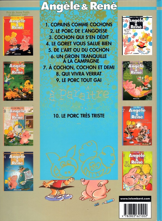 i>Angèle et René sont les meilleurs amis du monde. La première est une jolie petite fille aux couettes dorées et le second un … cochon. Oui mais pas n’importe quel cochon. Parfaitement bien intégré à la vie de famille, tel un animal de compagnie, il se fait un point d’honneur avec sa petite copine d’effectuer toutes les pitreries possibles, au grand dam des parents et des voisins. Et ces deux-là sont inséparables, quel enfant en effet n’a jamais rêvé d’un copain avec qui partager tous ses secrets.