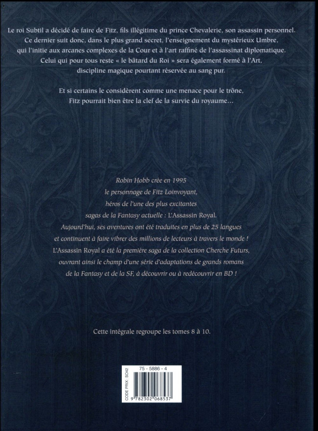 Résumé: Fitz, fils illégitime issu de la famille royale, est l'assassin personnel du roi. Il suit, en secret, l'enseignement du mystérieux Umbre, et s'initie aux arcanes de la Cour et à l'art de l'assassinat diplomatique.