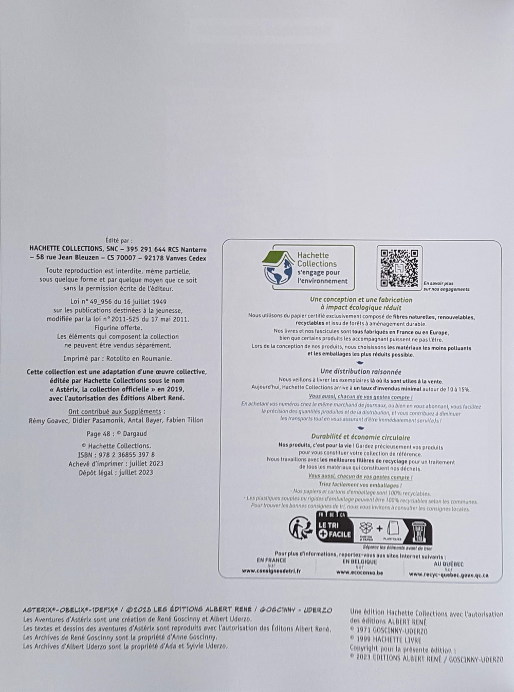 Dépot légal : 07/2023 (Parution le 10/01/2005)
