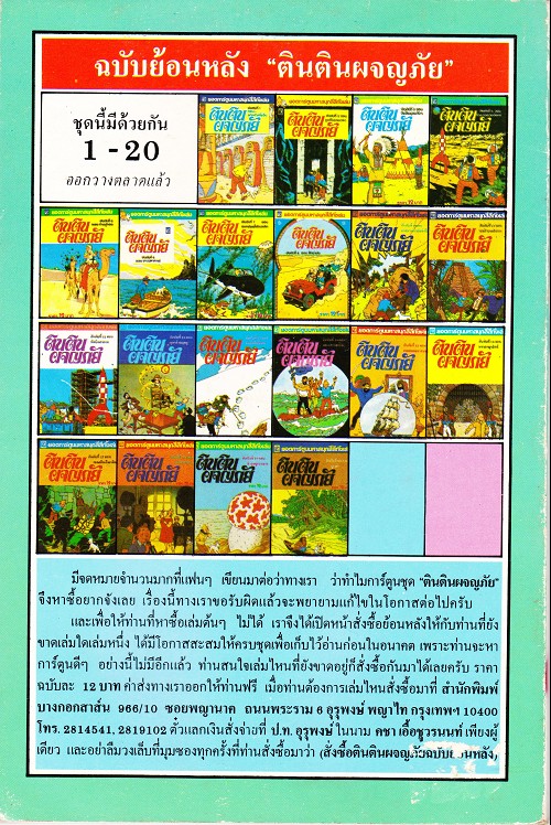 Album petit format, couverture souple. Pas d'ISBN. Assez étonnamment, le 4ème de couverture renvoi à la série..... Tintin ! La date d'édition est assez approximative, puisque rien n'est reporté dans l'album.