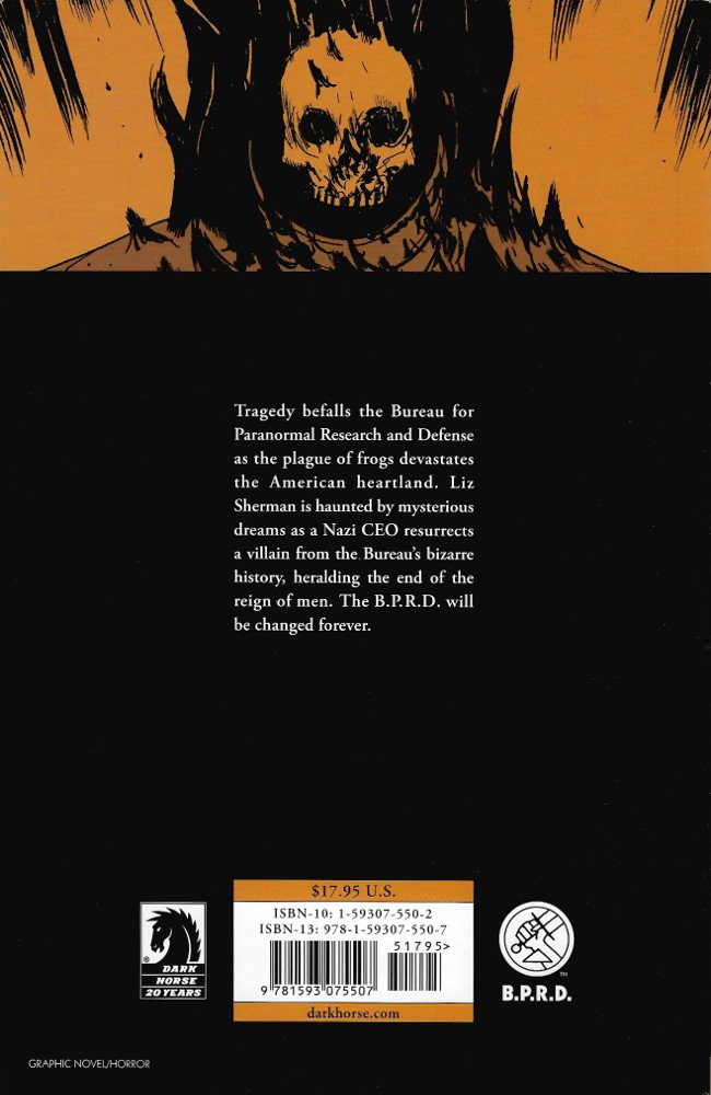 Résumé: The Bureau for Paranormal Research and Defense faces its worst tragedy ever as the war against the plague of frogs reaches a devastating new level. Heralded by a bizarre villain from the B.P.R.D.'s past, an ancient monster-god marches across the American heartland portending an end to the reign of men, and leaving a permanent mark on the Bureau. Hellboy-creator Mike Mignola continues his collaboration with artist Guy Davis and co-writer John Arcudi to unravel a tale that will leave the earth shaken and the B.P.R.D. shattered.