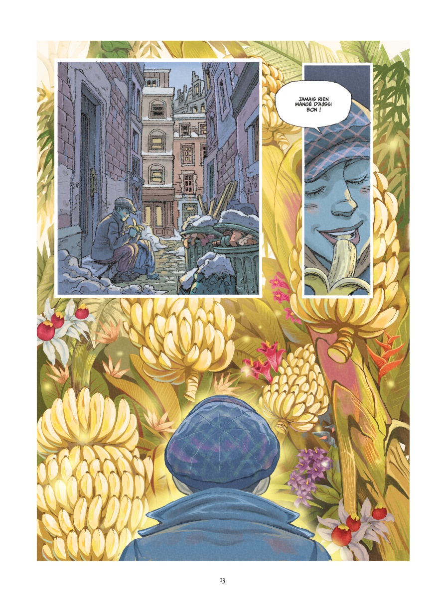 Travaillée depuis longtemps en géohistoire de l'alimentation, la banane est l'exemple-type du fruit mondialisé. Cependant, les acteurs qui ont fait de cette baie un produit phare et incontournable sont moins connus, alors que leur parcours est souvent singulier. C'est le cas de celui qui restera célèbre sous le surnom de Sam, the Banana Man, dont la vie est une véritable épopée à travers le début du vingtième siècle. À partir d'une documentation conséquente, Jack Manini a bâti un scénario qui a le mérite d'éviter de chercher à caser l'entièreté de ses sources. Il pointe les moments importants de la jeunesse de Samuel Zemurray pour souligner la façon dont celui-ci s'est construit. Surtout, le scénariste a choisi de ne rien cacher du contexte, pour dévoiler les coulisses du monopole bananier et ses conséquences sur la vie politique, économique et sociale en Amérique centrale en suivant Sam et ses comparses Tommy et Jimena, la fille d'un planteur. Le trio permet d'insérer un triangle amoureux qui vient densifier et romancer l'intrigue.
