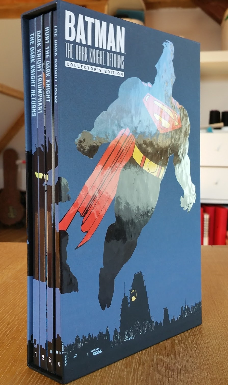 Résumé: The anniversary celebration of Frank Miller’s epic interpretation of the Dark Knight’s future continues with this new slipcase edition at DC’s Deluxe Edition trim size that reprints each issue of the original DARK KNIGHT RETURNS miniseries in its own hardcover volume, all in a beautifully designed slipcase. It is ten years after an aging Batman has retired, and Gotham City has sunk into decadence and lawlessness. Now, as his city needs him most, the Dark Knight returns in a blaze of glory. Joined by Carrie Kelly, a teenaged Robin, Batman takes to the streets to end the threat of the mutant gangs that have overrun the city. And after facing off against The Joker and Two-Face for the final time, Batman finds himself in mortal combat with his former ally, Superman, in a battle that only one will survive.