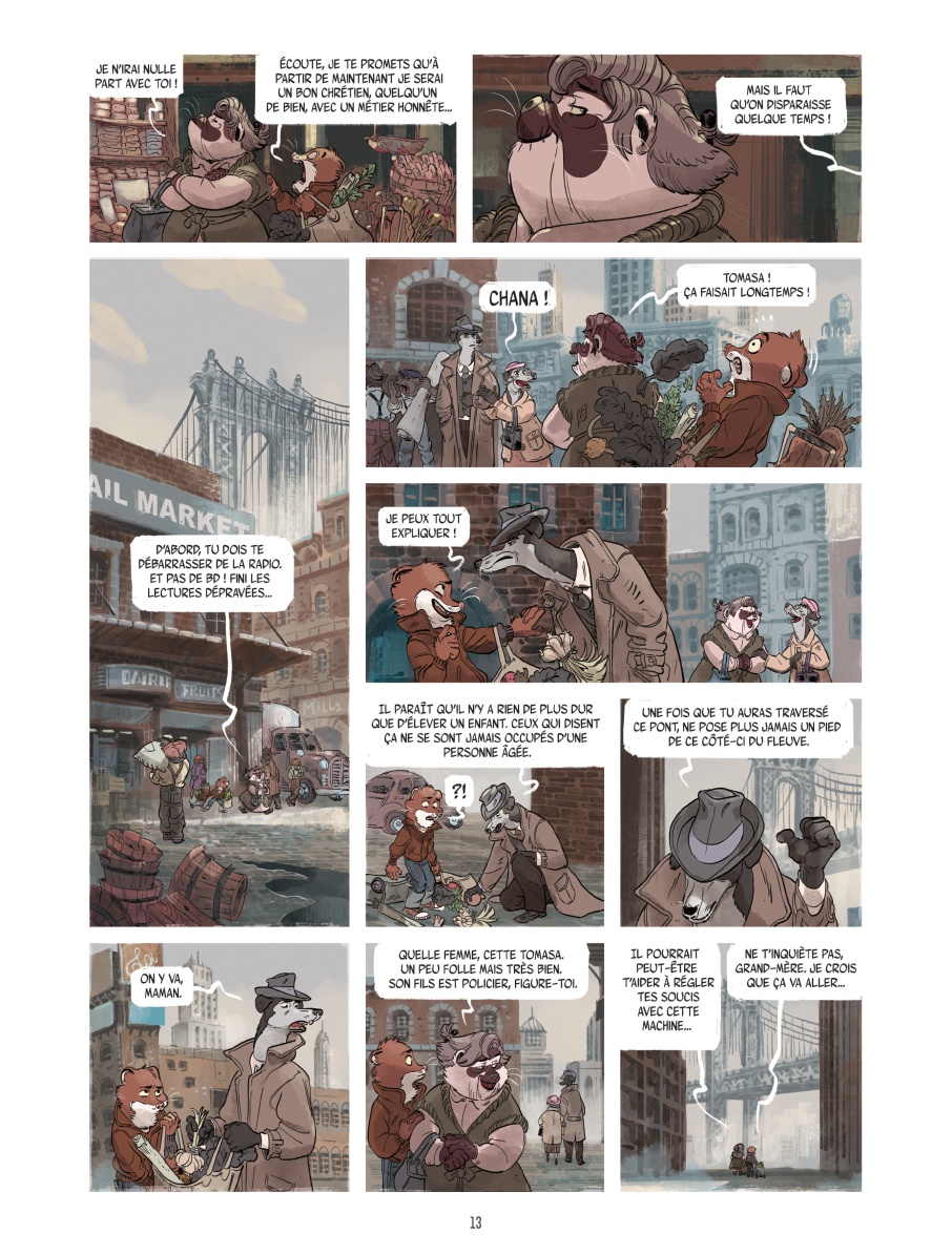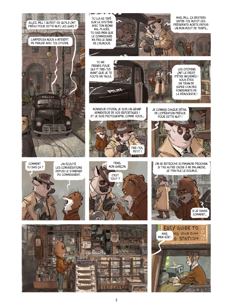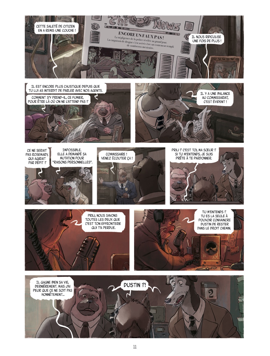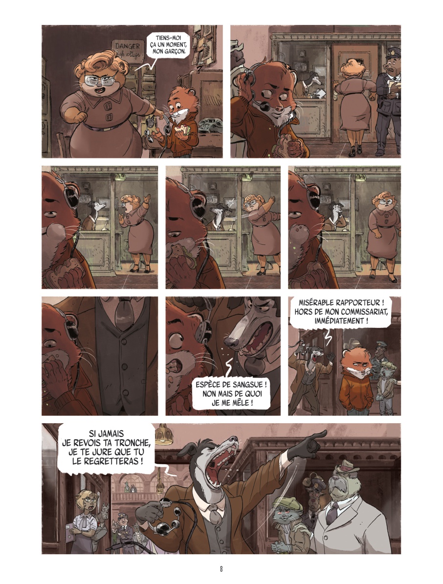 Sympathique, mais sans plus. On est très loin de la qualité d'un BLACKSAD, aussi bien sur le plan du scénario (ça ne décolle jamais vraiment et les personnages ne sont guère intéressants) que sur celui du dessin (un voire deux crans en-dessous, même si les bouilles des personnages anthropomorphiques sont réussies).