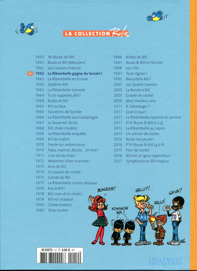 Info édition : L'album, dos toilé, à couverture avec vernis sélectif et sans ISBN, porte le n°4 pour insertion dans la frise et reprend le contenu de l'album 1 de "La Ribambelle". Contient en fin d'album 8 pages de bonus, "La Ribambelle, dans les coulisses de la série", avec notamment "Le Portfolio de Roba" et des documents d'archives.