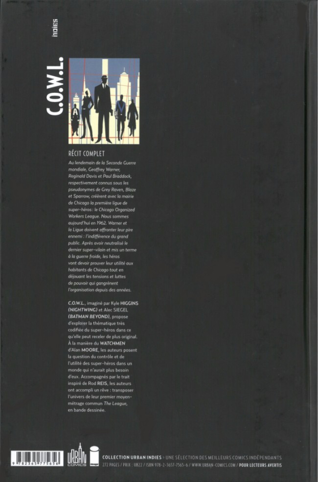 Résumé: Au lendemain de la Seconde Guerre mondiale, Geoffrey Warner, Reginald Davis et Paul Braddock, respectivement connus sous les pseudonymes de Grey Raven, Blaze et Sparrow, créèrent avec la municipalité de Chicago le premier syndicat historique de super-héros : le Chicago Organized Workers League . Nous sommes aujourd'hui en 1962. Warner et le C.O.W.L. doivent affronter leur pire ennemi : l'indifférence du grand public. Après avoir neutralité le dernier super-vilains et mis un terme à la Guerre Froide, les héros vont devoir prouver leur utilité aux habitants de Chicago tout en déjouant les tensions et luttes de pouvoir qui gangrènent l'organisation depuis des années.