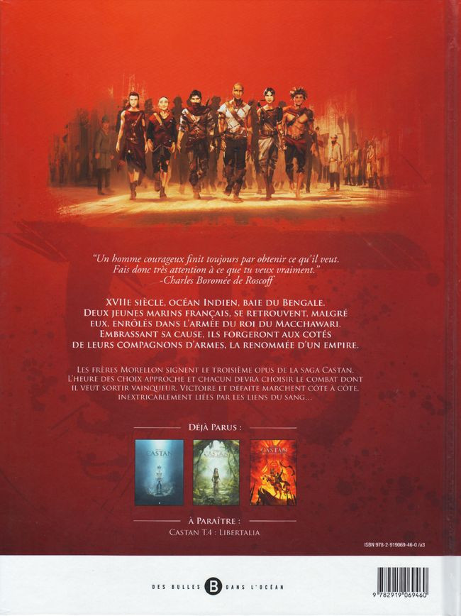 Le petit éditeur réunionnais Des bulles dans l'Océan a été découvert par hasard au détour d'une pérégrination sur Facebook. Souvent les petits éditeurs tentent de se faire une place avec des auteurs semi-pro qui ont des capacité mais pas nécessairement de technique et d'expérience. Au détour d'un catalogue on peut dénicher un auteur qui sort du lot, comme ce fut le cas avec Ronan Toulhoat en 2010 chez Akiléos, jeune auteur débutant, avec beaucoup de lacunes à l'époque mais que le travail quotidien a amené à être aujourd'hui l'un des meilleurs dessinateur BD français du circuit. Pour d'autres comme Mathieu Thonon, le potentiel est là mais l'on ne voit pas de suite... Les quelques planches de Castan présentées par l'éditeur m'ont pas mal bluffé et s'en sont suivi d'un très aimable envoi SP du tome 3 sorti en début d'année. Castan est une série d'aventure semi-historique réalisée par les frères Morellon. Elle suit le héros éponyme et ses compagnons entrés au service de l'armée du Machawari et de son généralissime Kien Long. N'ayant pas lu les deux premiers tomes je ne vais décrire que le dernier publié: Castan et ses compagnons ont été pris sous l'aile protectrice de la belle et redoutable Kien Long qui impose ses conditions au roi du Machawari, le jeune Rajanh Orcha, soumis à l'influence corruptrice de Jefta. L'heure de la bataille finale contre le roi Xiang et ses redoutables guerriers Uzunu a sonné.... Dès le premier feuilletage de l'album j'ai été soufflé par le style du dessinateur, par la maîtrise de l'outil numérique et la mise en couleur. Ce qui distingue ce jeune autodidacte c'est la maturité de son trait, bien plus élégant et précis que celui de Toulhoat à ses débuts pour reprendre l'exemple ci-dessus. Le trait des personnages est une des forces du dessin d'Alexandre Morellon ainsi que le design général des décors, des costumes, sorte de syncrétisme total de 5000 ans d'histoire de l'humanité mélangeant Inde, Extrême-orient et Arabie avec des influences de l'imaginaire collectif des mille et une nuits. Ces planches sont vraiment magnifiques et dotées d'une colorisation parfois brute de numérique, mais qui donne un éclairage superbe aux dessins. Comme pour Gung-Ho, les allergiques au dessin numérique pourront passer à côté, mais personnellement, pour peu que l'on ne regarde pas trop les détails et les plans larges j'ai pris un grand plaisir graphique à la lecture de cet album en me disant que pour un troisième ouvrage, le dessinateur a un potentiel encore assez énorme! La principale faille du dessin repose sur les fonds de plans, les personnages en pied étant parfois dessinés maladroitement et certaines cases d'action où l'outil numérique montre ses limites, dans la gestion du mouvement et la lisibilité de la page. Mais sincèrement, si l'on replace l'album dans le grand four de la BD d'héroïc-fantasy grand public, on est loin au-dessus de pas mal de productions Soleil. Niveau scénario, c'est compliqué puisque j'ai pris la série en cours de route et que je n'ai pu que supputer les aventures précédentes. Mais le gros point est la description des personnages et leurs dialogues, très efficaces, percutants. Le personnage du général Kien Long, femme de tempérament à l'autorité indéniable est le plus réussi. Alors que ce genre de série nous à habitué au vieux général sage et ferme, qui a mené mille campagne à la tête d'hommes qui donneraient leur vie pour lui, la transposition de cet archétype dans la peau d'une magnifique jeune femme athlétique et redoutable stratège est très gonflé... et cela fonctionne! Elle vole la vedette au héros Castan qui s'appuie sur des amis peut-être un peu effacés (sans doute la constitution du groupe est-elle narrée dans les deux premiers volumes). L'intrigue est structurée autour de la stratégie secrète menée pour vaincre le roi Xiang qui donne son titre à l'album et de la conquête de cette forteresse sous le voile des manigances du conseiller du roi, le très perfide et (encore une fois) très bien dessiné Jafta. Cet album parvient à noue faire voyager en une contrée exotique aux tentures d'azure et aux arcades dentelées, parmi les soldats d'armées épiques aux armures étincelantes... la vraie grande aventure en cinémascope! Je vous invite donc vivement à découvrir cet éditeur et ces deux jeunes auteurs pour une série créative qui fait vraiment plaisir et dont on attend la suite avec impatience. Lire sur le blog: https://etagereimaginaire.wordpress.com/2018/10/10/castanBDGest 2014 - Tous droits réservés