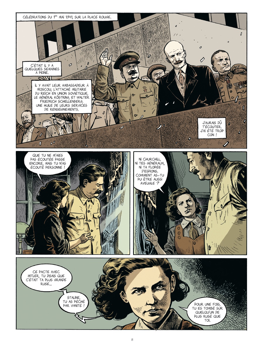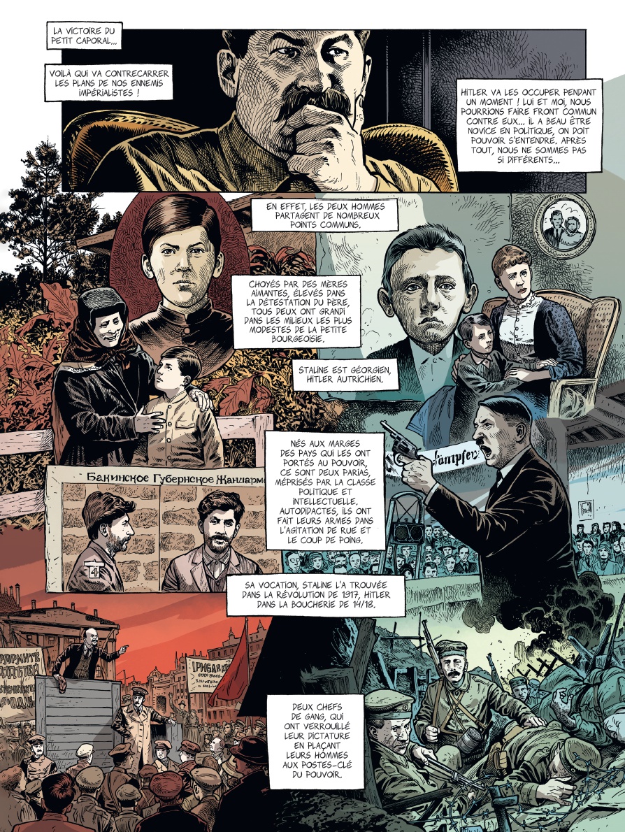 Avant le fracas des Panzer en 1940, il y a la lente agonie des illusions : les démocraties, engluées dans leurs compromis, ferment les yeux sur la montée des périls. Hitler réarme, Staline purge, et chacun prépare son coup. Les accords de Munich, la guerre d'Espagne, les annexions successives : autant de signaux ignorés. Pire ! Personne n'imagine la « romance » entre les deux dictateurs qui a été, à bien des égards, ignorée ou mise sous le boisseau et se concrétise par le coup de tonnerre du pacte germano-soviétique de 1939. Se souvient-on également que moins de deux mois avant le déclenchement de l'opération Barbarossa, une délégation nazie est présente, en majesté, aux célébrations du 1er mai sur la Place rouge, pour recevoir les honneurs du dictateur soviétique ?