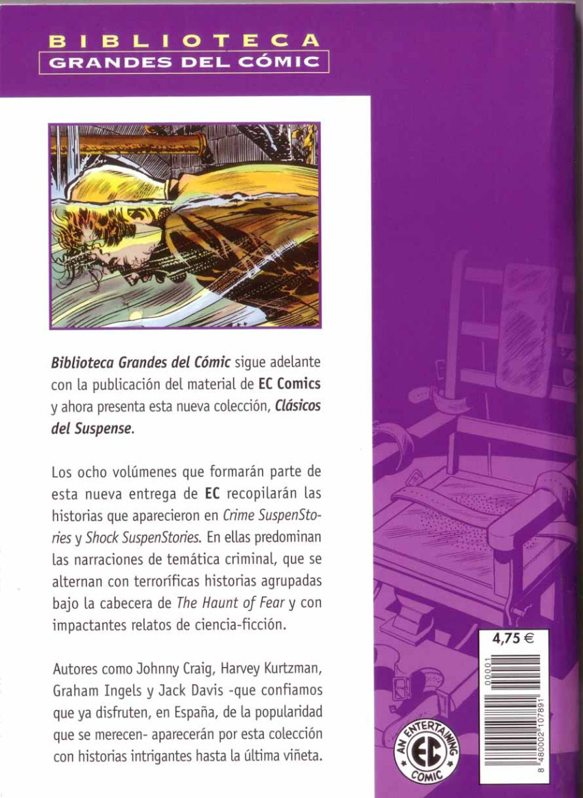 - Info édition : Contenido V.O : Crime Suspenstories #1 (octubre/noviembre 1950), Crime Suspenstories #2 (diciembre 1950/enero 1951), Crime Suspenstories #3 (febrero/marzo 1951), Crime Suspenstories #4 (abril/mayo 1951), Crime Suspenstories #5 (junio/julio 1951)