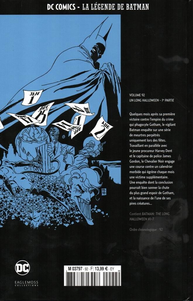 Info édition : Contient les Albums US Batman : The long Halloween #1 à #7. L'album, ans ISBN, porte le n° 92 pour insertion dans la frise.