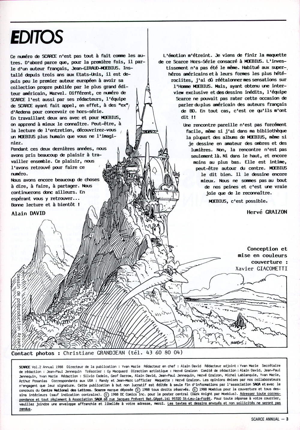 - Info édition : Longue interview de Moebius (15 pages) alors qu'il résidait aux Etats-Unis,accompagnée de nombreux dessins inédits.