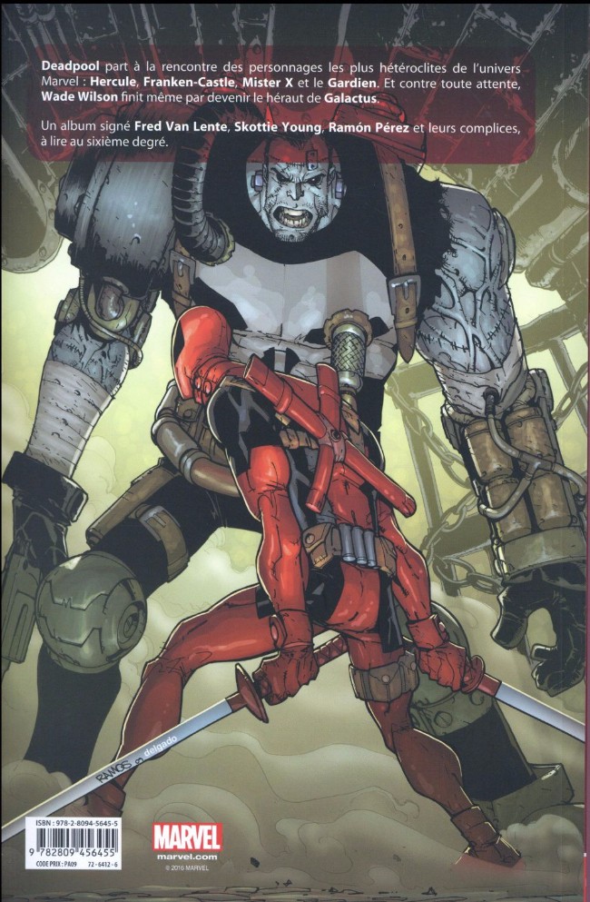 Résumé: Deadpool poursuit ses aventures dans des duos improbables avec les héros de l’univers Marvel. Retrouvez le avec Hercules et le Punisher mais aussi avec Uatu le Gardien, Mr X ou même Galactus !