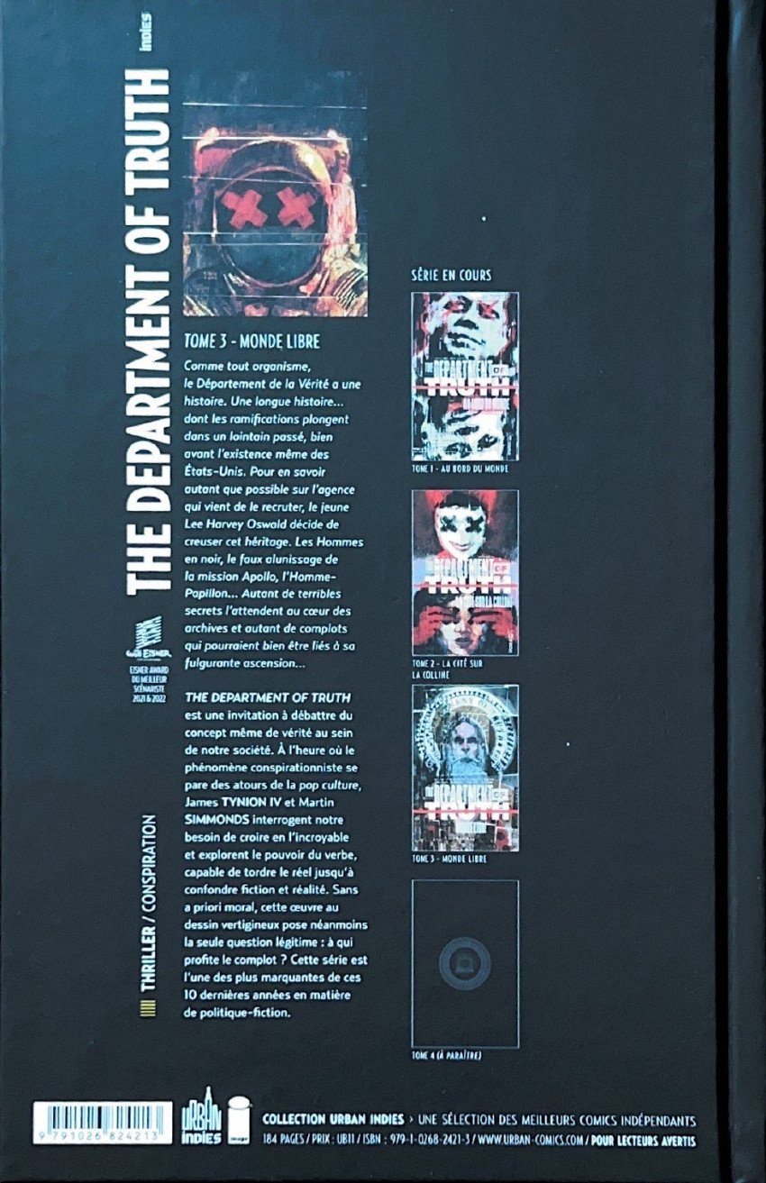 Résumé: Comme tout organisme, le Département de la Vérité a une histoire. Une longue histoire... dont les ramifications plongent dans un lointain passé, bien avant l'existence même des États-Unis. Pour en savoir autant que possible sur l'agence qui vient de le recruter, le jeune Lee Harvey Oswald décide de creuser cet héritage. Les Men in Black, l'alunissage, L'Homme-Papillon, autant de terribles secrets l'attendent au coeur des archives, autant de complots qui pourraient bien être liés à sa fulgurante ascension...