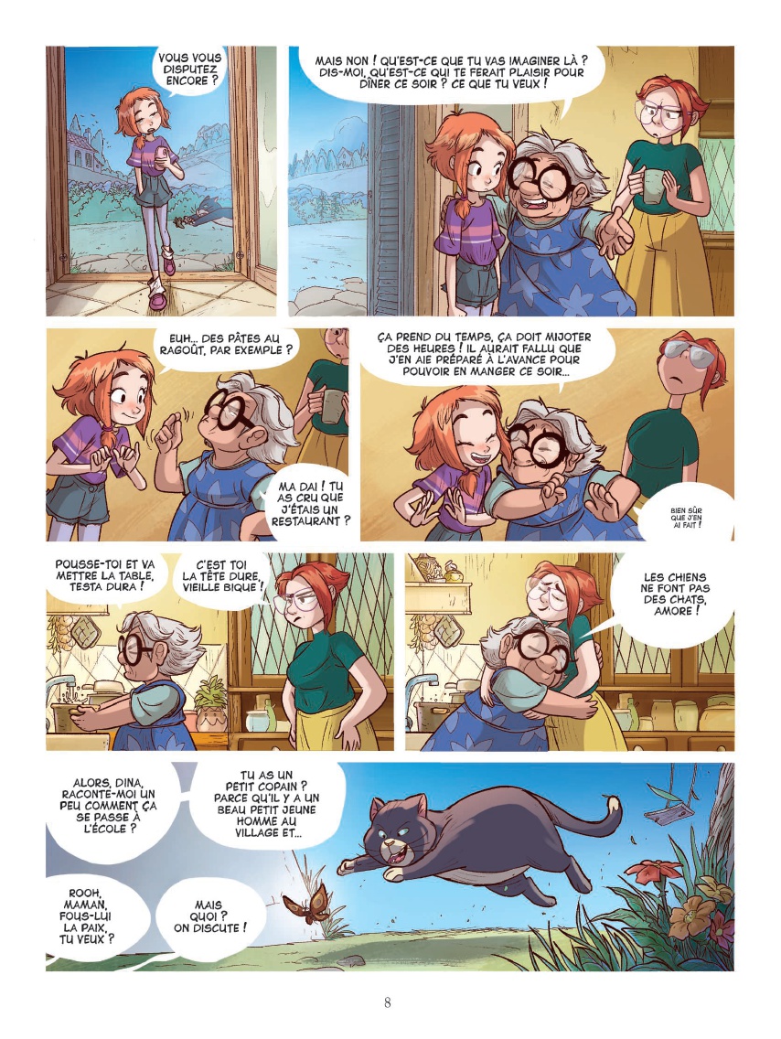 Résumé: La jeune Dina, dont le père a mystérieusement disparu depuis un an, vit seule avec sa mère. Mais pour l'instant, c'est direction vacances, dans le petit village de sa nonna ! Mais voici que Dina se réveille un beau matin rétrécie à une taille de 5 millimètres ! Autour d'elle, les habitants du Millimonde, un village de lilliputiens installé dans le grenier de nonna ! Dina va devoir maintenant affronter chat et insectes devenus géants, luttes de pouvoir au sein du village, mais aussi un bien étrange secret pâtissier...