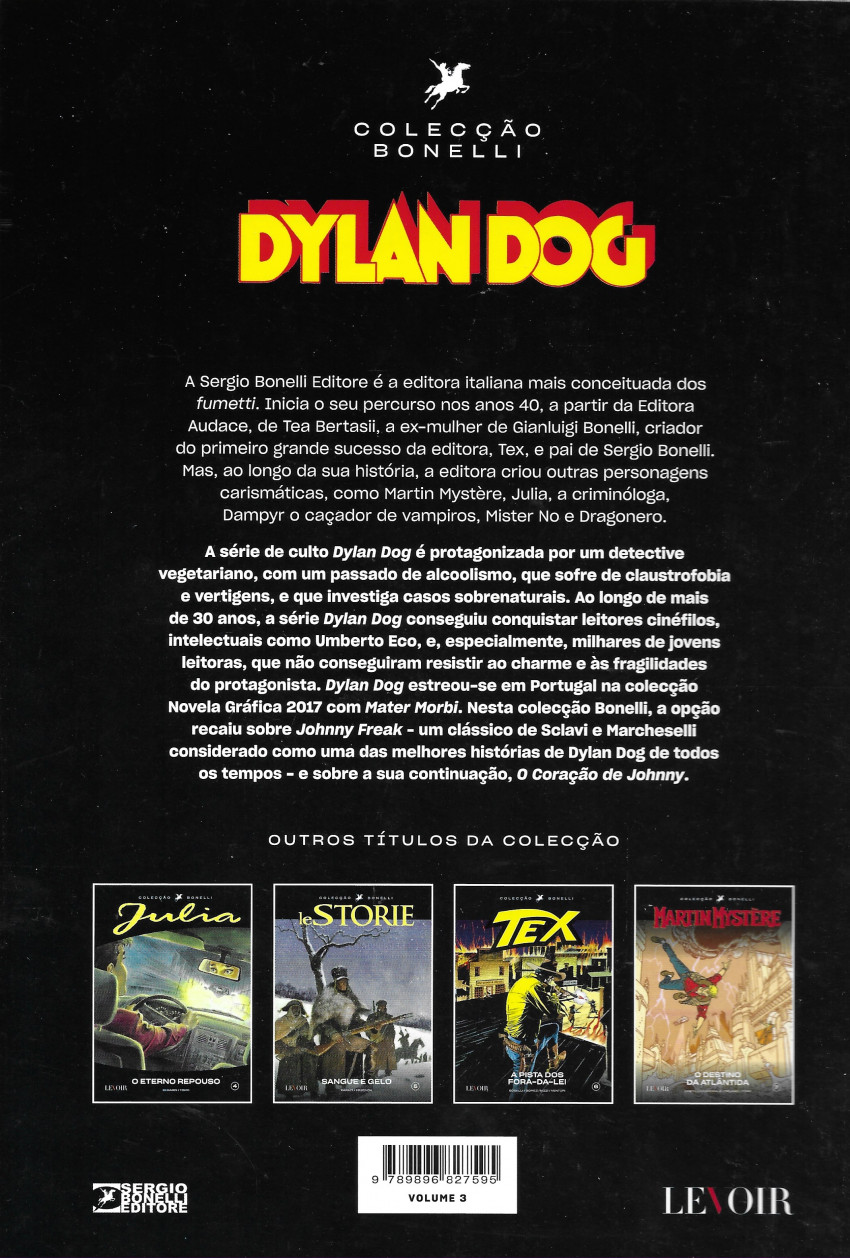 Résumé: Este volume recolhe duas histórias escritas por Tiziano Sclavi, o criador de Dylan Dog, a partir de uma ideia do editor Mauro Marcheselli, protagonizadas por Johnny Freak, um jovem mudo e gravemente mutilado. Publicada originalmente em 1993 no nº 81 da revista Dylan Dog, Johnny Freak é considerada como uma das melhores histórias de sempre de Dylan Dog. Este volume recolhe também O Coração de Johnny, uma continuação da história anterior, em que Andrea Venturi cede o lugar a Giampiero Casertano nos desenhos.