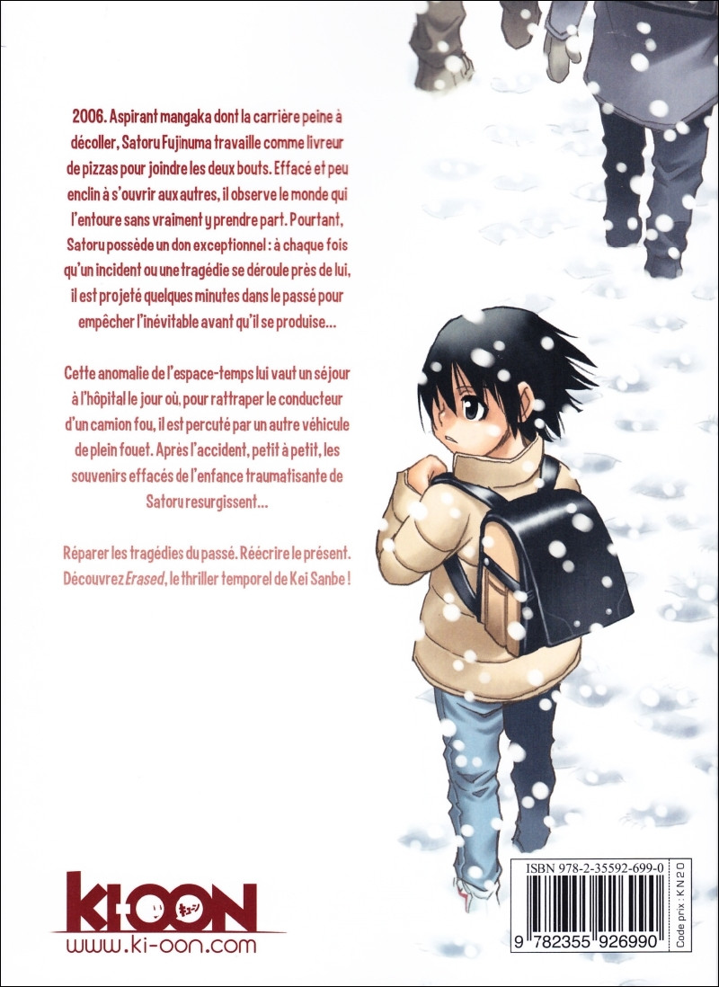 Réparer les tragédies du passé. Réécrire le présent. Découvrez Erased, le thriller temporel de Kei Sanbe !
