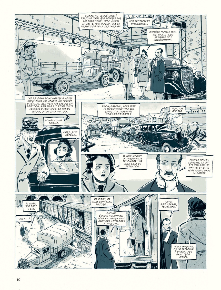 Après les aventures de Madeleine Riffaud - grande résistante et engagée politique, femme de lettres et aventurière -, véritable joyaux de la collection « Aire Libre », la prestigieuse collection des éditions Dupuis accueille l'odyssée d'une autre Madeleine, celle de l'officier médecin Pauliac et de son groupe d'infirmières-ambulancières de l'Escadron bleu. Une oeuvre de la scénariste-romancière Virginie Ollagnier (Ils ont tué Oppenheimer, Nellie Bly) et du dessinateur Yan Le Pon qui adaptent le récit Madeleine Pauliac, l'insoumise de Philippe Maynial, son neveu.