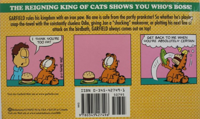 Résumé: GARFIELD rules his kingdom with an iron paw. No one is safe from the portly prankster! So whether he's playing snap-the-towel with the constantly clueless Odie, giving Jon a "shocking" makeover, or plotting his next line of attack on the birdbath, GARFIELD always comes out on top!