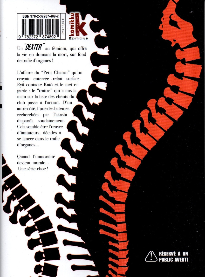 Résumé: L'affaire du "Petit Chton" qu'on croyait enterrée refait surface. Ryû contacte Katô et le met en garde : le "traitre" qui a mis la main sur la liste des clients du club passe à l'action. D'un autre côté, l'une des baleines recherchées par Takashi disparaît soudainement. Cela semble être l'oeuvre d'imitateurs, décidés à se lancer dans le trafic d'organes...