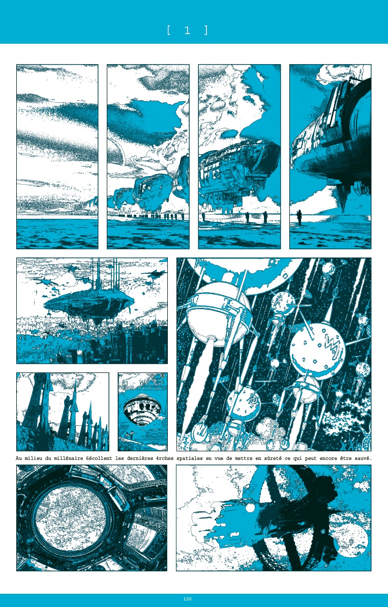 Résumé: Après avoir montré, dans les trois premiers volumes, quelles représentations les hommes se sont forgées de l’évolution de l’Univers et de leur Histoire, Jens Harder se penche ici sur l’avenir. Quel sera celui de notre planète ? Quelle sera l’issue du changement climatique puis de l’effondrement des écosystèmes ? Quel rôle jouera la technologie dans notre survie ? Toutes ces questions et bien d’autres sont abordées dans ce volume qui clôt "Le Grand Récit".