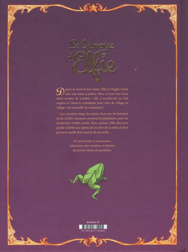 Leur première étape les amène dans une île bretonne où de vieilles rancœurs secouent la population, pour un mystérieux timbre perdu. Mais surtout, Elfie découvre qu’elle a hérité des talents de sorcière de sa mère et d’un grimoire qu’elle doit nourrir de ses écrits…