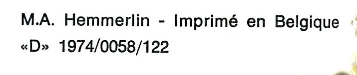 Au 4e plat, le dernier titre de la collection est "14 Tom Sawyer et les pirates" et sous le symbole en trèfle d'Hemma : S 1511/6. Page 16 : "D" 1974/0058/122. Format 25,8 x 20,6 cm.