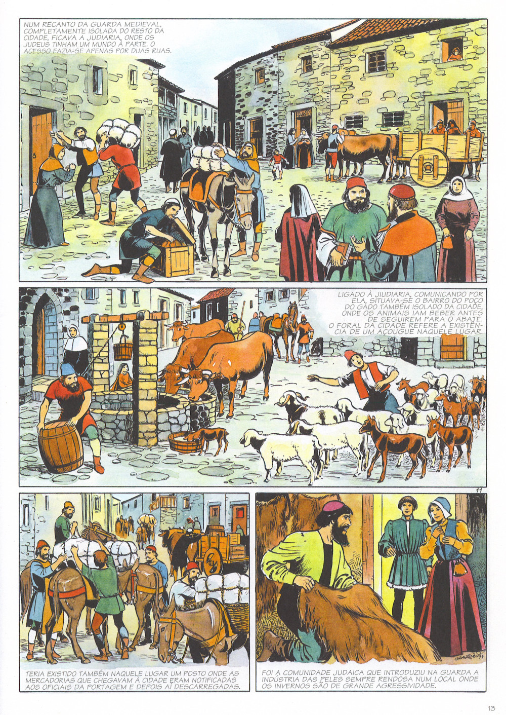 Résumé: Sao oitocentos anos de historia da Guarda que agora se transpoem para a banda desenhada com a chancela do mestre Jose Garces. Com uma origem perdida na bruma dos tempos e na bruma da serra, a regiao que hoje compreende a Guarda foi, entre lendas e acontecimentos historicos, um local de batalhas e milagres, onde o povo dessas terras soube manter a sua constancia (qualidade imprescindivel numa regiao tao dura) face a adversidade e aos inimigos da terra e do pais. Assim o foi com os mouros e castelhanos mas tambem com os invasores franceses. A Guarda e hoje uma cidade em franco crescimento e que sabe honrar o seu passado e a historia daqueles que contribuiram para o seu desenvolvimento. Este trabalho de Jose Garces demonstra isso mesmo, transmitindo de uma forma leve mas correcta os pontos mais importantes da historia da Guarda e dos seus.