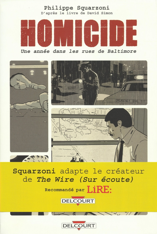 Homicide propose la chronique d’une année de la brigade des homicides de la police municipale de la ville la plus violente des Etats-Unis. Adaptée d’un livre de David Simon qui a donné naissance à la mythique série TV The Wire (Sur Ecoute), la série de Philippe Squarzoni, spécialiste de BD documentaire, se mets à hauteur d’homme en nous livrant le quotidien de ces hommes, loin du show des films et séries policières. Quatre volumes sont parus (sur cinq prévus), chacun couvrant un ou deux mois d’activité de la brigade. Dans les rues de Baltimore il y a en moyenne un meurtre deux jours sur trois. Pour résoudre ces meurtres la police municipale a deux brigades d’enquêteurs. Ainsi les affaires en cours s’accumulent avant que l’on ait le temps de les résoudre. Entre fonctionnement administratif, réalité des crimes et relations humaines, entrez dans le quotidien de ces policiers qui tâchent de confondre des criminels en se demandant pour qui, pour quoi… J’avais été impressionné par la qualité documentaire de l’ouvrage Saison Brune que Philippe Squarzoni avait publié il y a quelques années à propos du réchauffement climatique, en adoptant le point du vue du novice. Ici la démarche est autre puisque l’on est sur l’adaptation d’un bouquin source qui n’envisage pas de récit de l’observateur mais agit plutôt comme la caméra d’un Depardon, captant froidement des scènes, des dialogues, des regards. Il y a bien une narration qui nous explique les dessous, des chiffres, mais toujours dans le sens didactique. N’ayant pas vu la série TV je ne savais pas à quoi m’attendre et ai été bluffé par l’intensité du récit, la profondeur des problématiques. Ce sont des tranches de vie qui nous sont ainsi montrées, entre différentes affaires dont on ne sait jamais la conclusion car elles ne se résolvent pas en quelques jours (ce premier tome couvre quelques semaines seulement de l’année 1988, année couverte par David Simon comme journaliste au sein de cette brigade). Mais très vite on nous explique qu’en raison de la profusion de crimes et des moyens limités certaines constantes doivent vite être intégrées par un enquêteur: premièrement que tout le monde ment pour différentes raisons, à différents degrés, ensuite que la plupart du temps les affaires sont réglées sur un coup de chance. La chance de tomber sur l’indice confondant, la chance d’un témoin qui craque, la chance d’un collègue qui fait bien son boulot… Les enquêtes ne tiennent qu’à des détails derrière une pression hiérarchique toute administrative: le maire, l’élu chargé de la sécurité, les différents échelons de la police et cette mise en concurrence des deux brigades. [...] Lire la suite sur le blog: https://etagereimaginaire.wordpress.com/2019/11/10/homicide-1/Le 12/03/2017 à 22:32:09