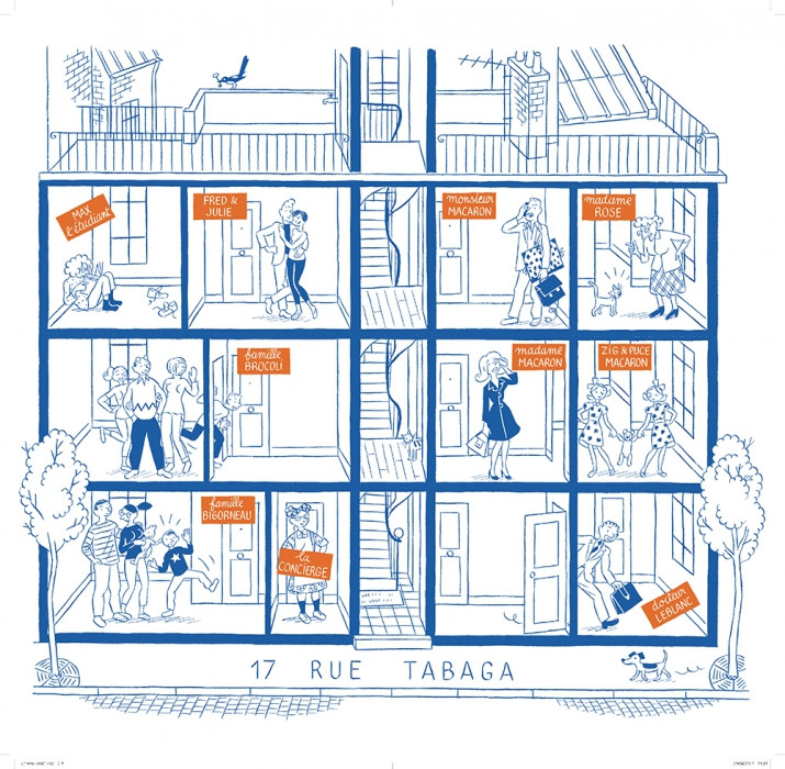 Résumé: Douze doubles-pages, comme les douze mois de l’année, au cours desquelles le lecteur observe les transformations d’un immeuble. La vie de cet immeuble se métamorphose au rythme des saisons, des vies se croisent et se décroisent, des enfants naissent, des occupants partent et ainsi passent les jours. Avec ce grand format tout en hauteur, l’enfant est invité à observer les habitants (représentés toujours dans le même décor, l’immeuble vu de coupe) et les mille et un détails cachés dans les images. À lui de retrouver les œufs de Pâques que les cloches ont cachés, les monstres d’Halloween qui se sont invités et le vrai Père Noël parmi les gens déguisés !