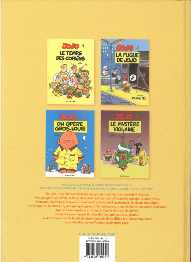 En 1983, Jojo fait de timides débuts, en quart de page ; il n'est là que pour boucher les trous. Jusque-là, le rédacteur en chef du Journal Spirou voyait en André Geerts un auteur dans la lignée de Sempé. Si ses pages relevaient effectivement d'un esprit voisin, c'est avec Jojo qu'il affirme la dimension intensément poétique de son talent. Geerts développe un univers familier où la nostalgie d'une enfance heureuse, saupoudrée d'incessantes références autobiographiques, un regard tendre sur ce qu'est un enfant. En douceur, Jojo s'inscrit ainsi dans la tradition des séries familiales et ne ressemble véritablement à aucune autre.
