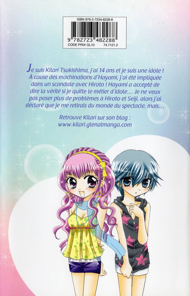 Résumé: Je suis Kilari Tsukishima, j'ai 14 ans et je suis une idole ! À cause des machinations d'Hayami, j'ai été impliquée dans un scandale avec Hiroto ! Hayami a accepté de dire la vérité si je quitte le métier d'idole Je ne veux pas poser plus de problèmes à Hiroto et Seiji, alors j'ai déclaré que je me retirais du monde du spectacle. Seulement