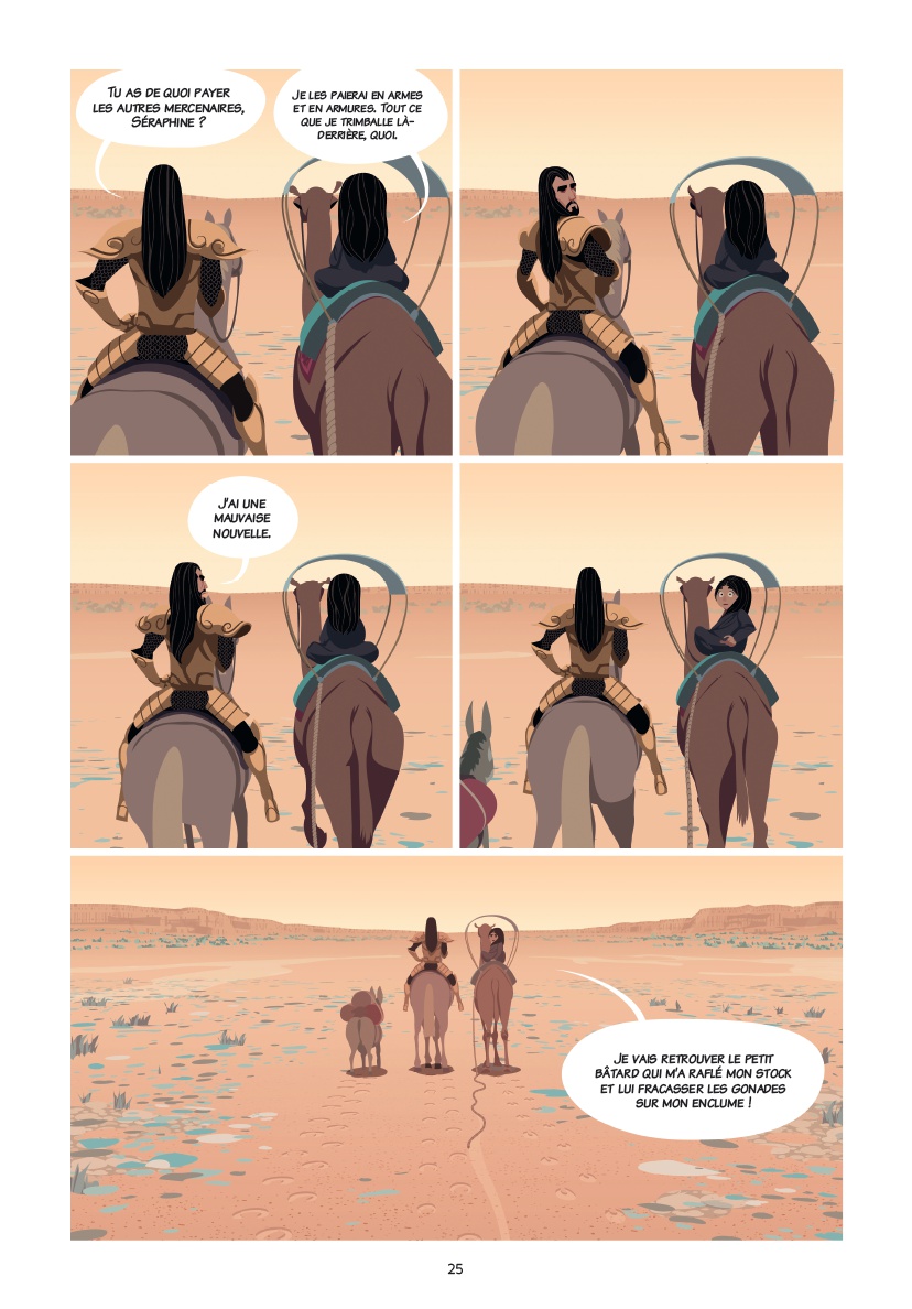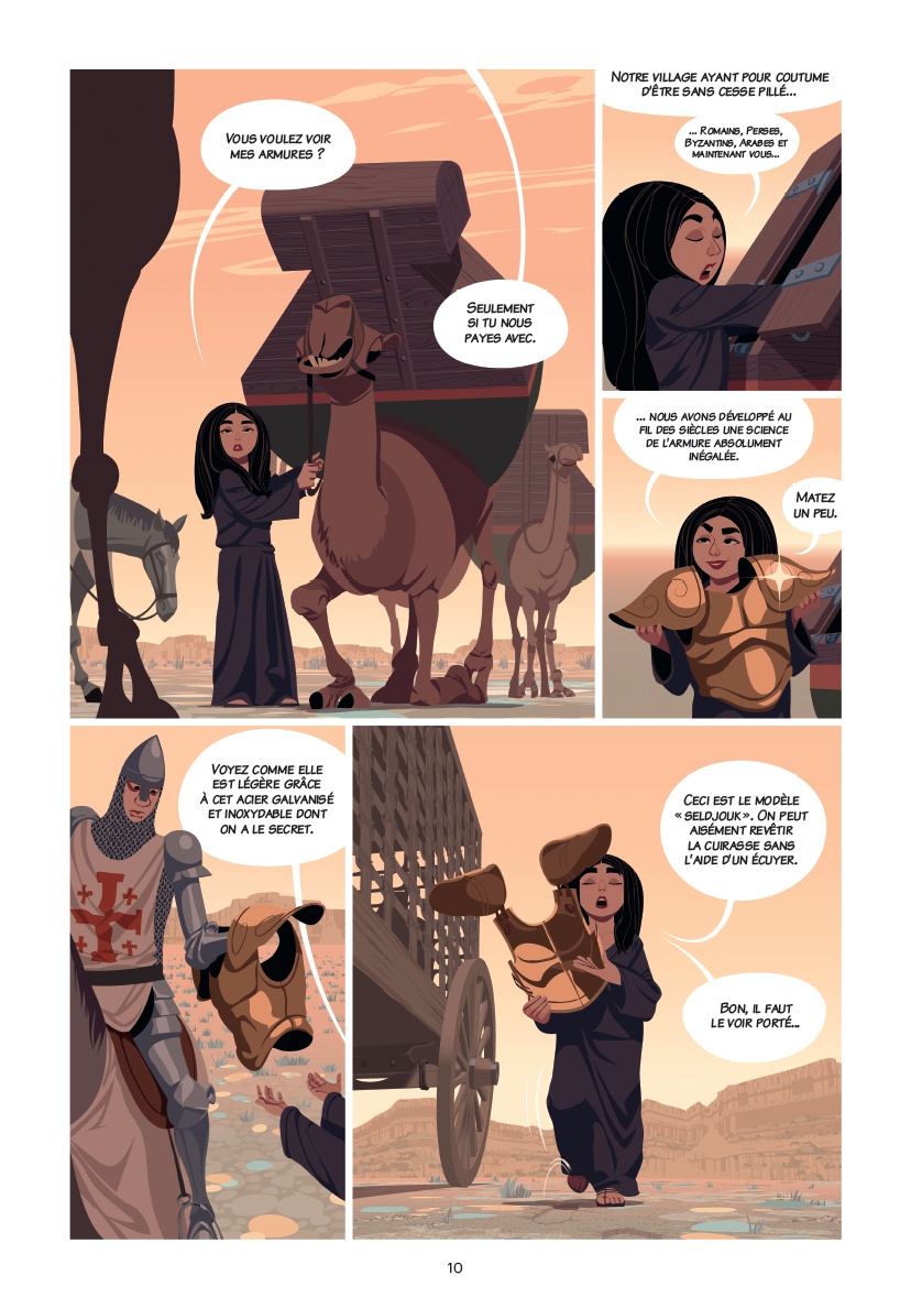 Résumé: Bienvenue au XIIe siècle, cette époque délicieuse où porter une armure en métal sous un soleil brûlant est à la mode ! Séraphine, forgeronne émérite, arpente les déserts brûlants de la Terre sainte à la recherche d'une escouade de guerriers assez téméraires - ou inconscients - pour protéger son village natal des croisés Francs qui menacent de revenir piller les habitants sous peu.
