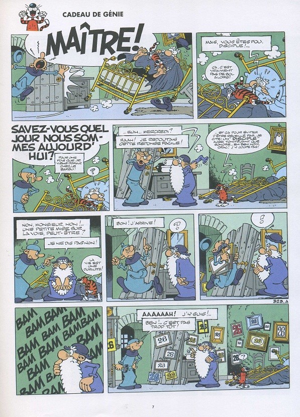 Résumé: Un matin, en essayant une nouvelle solution pour enlever les poils, notre pauvre disciple perd le peu de cheveux qu'il lui reste sur le crâne. Mais les problèmes capillaires chez le génie ne durent jamais très longtemps ! Aussitôt, il trouve une lotion pour les faire repousser. Tout va bien qui finit bien donc ! A moins que...