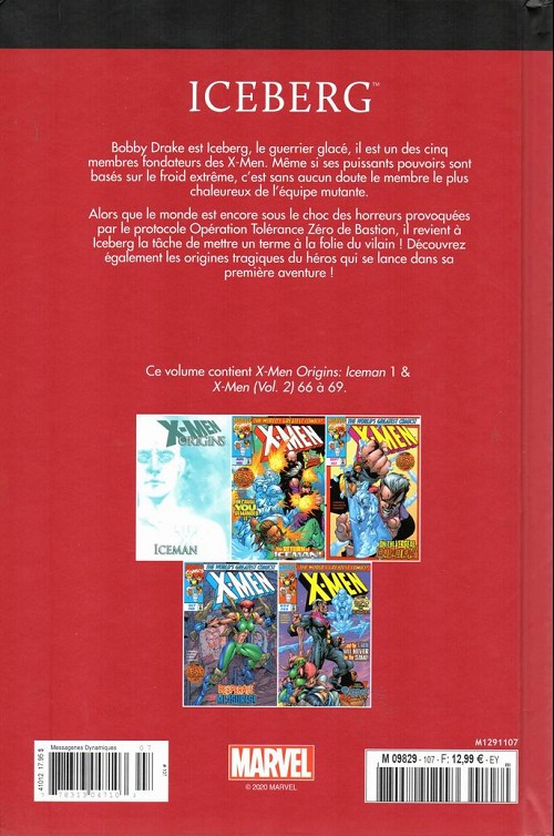 Info édition : Contient les épisodes US X-Men Origins : Iceman 1 et X-Men (Vol.2) 66 à 69. L'album sans ISBN, à couverture avec vernis sélectif porte le n° 107 pour insertion dans la frise de dos illustrée par Adi Granov. Avec en fin d'album un cahier additionnel de 5 pages.