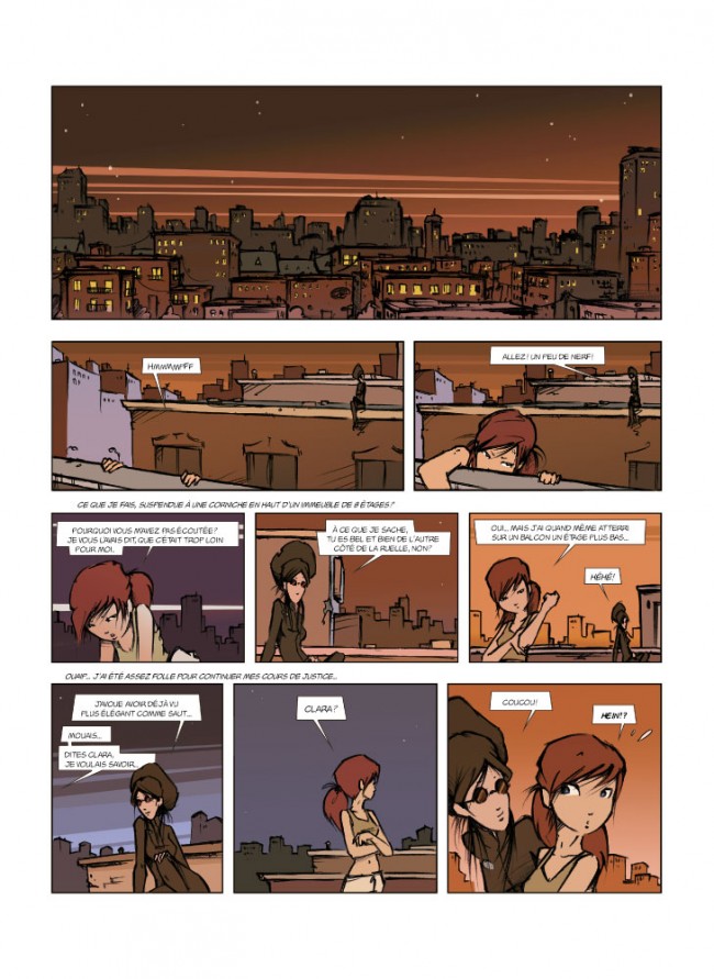 Tout d'abord le dessin est sympa et les couleurs s'adaptent bien à l'histoire et aux personnages. L'agencement des cases et la voix off donnent un côté original à l'ensemble, même si c'est sans doute un peu trop poussé par moment.