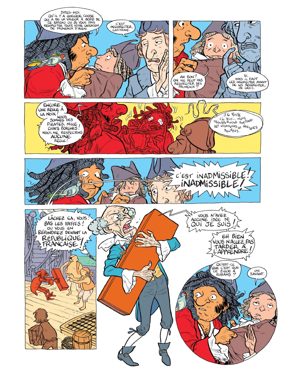 Résumé: Février 1794, mer des Caraïbes. Envoyé par le gouvernement révolutionnaire pour rencontrer le président américain Thomas Jefferson, le savant Joseph Dombey est capturé à bord du bateau pirate Le Fieffé Coquin. Il transporte avec lui une mallette qui contient des instruments révolutionnaires : le mètre décimal, un cube pour mesurer le litre et un cylindre d'un kilogramme.