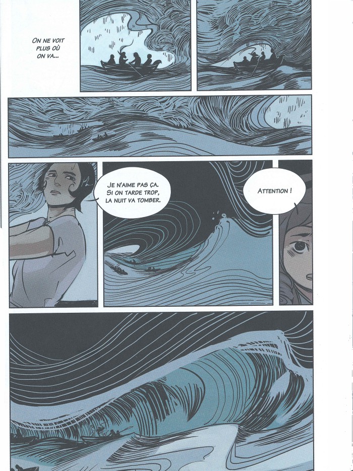 Cassandra Jean l'accompagne à merveille. Son trait à la fois fin, jeté et élégant lui permet de matérialiser avec à propos les situations sans pour autant se perdre dans les détails. L'essentiel est retranscrit, la lourde ambiance, l'atmosphère pesante, le stress de cette course-poursuite, la peur comme les doutes et l'espoir qui traversent les protagonistes. Cette économie d'effets se retrouve également dans la représentation des créatures. Très sobre, elle possède toutefois ce qu'il faut d'angoissant pour marquer sans traumatiser. Reprenant l'une des caractéristiques des romans, avec le même bonheur, l'artiste n'hésite pas à insérer des photographies d'époque dans ses planches. Enfin, s'il reste un peu austère, le noir et blanc, parfois rehaussé de couleurs pour matérialiser certains pouvoirs, contribue au climat particulier (sans jeu de mots) de cette aventure.