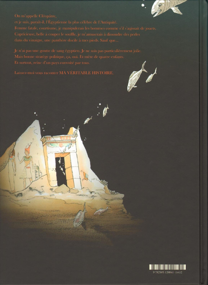 Paru chez Dargaud, Moi, Cléopâtre, dernière reine d’Égypte prend la forme d’un récit à la première personne, le fantôme de la protagoniste se racontant au gré des réminiscences qu’elle partage avec son singe apprivoisé. Les lecteurs découvrent ainsi la souveraine dans son intimité, à travers ce qu’elle vit aux côtés de ses servantes et les pensées qu’elle confie à un corps momifié. Son humanité, dépouillée des artifices d’une royauté qui se veut divine, et ses émotions transparaissent, la rendant proche, presque amicale. L’héroïne se révèle aussi cultivée qu’enjouée et incarne pleinement ses rôles multiples et successifs : fille préférée du père, héritière présomptive, épouse forcée, mère comblée, monarque impliquée et n’hésitant pas à se mêler au peuple, savante versée dans les expériences. En parallèle, les hommes de sa vie se montrent également sous un jour très humain, notamment Marc Antoine. Par petites touches, l’autrice souligne également le rapport de force géopolitique à l’œuvre durant cette période, ainsi que les différences culturelles entre les sphères latines et égyptiennes. Elle épingle, par exemple, la chape patriarcale incarnée par la vision que les généraux romains ont du rôle des femmes, laquelle va à rebours de ce qu'incarne Cléopâtre.