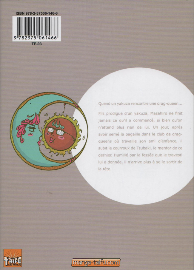 Résumé: Quand un yakuza rencontre une drag-queen... Fils prodigue d'un yakuza, Masahiro ne finit jamais ce qu’il a commencé, si bien qu'on n’attend plus rien de lui. Un jour, après avoir semé la pagaille dans le club de drag-queens où travaille son ami d’enfance, il subit le courroux de Tsubaki, le mentor de ce dernier. Humilié par la fessée que le travesti lui a donnée, il n’arrive plus à se le sortir de la tête.