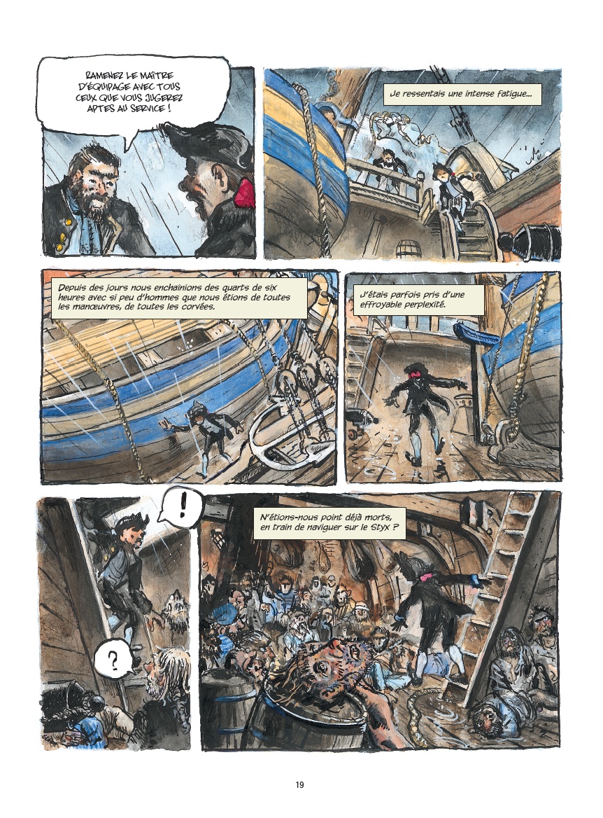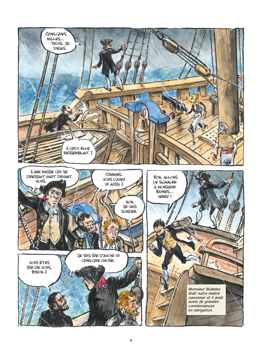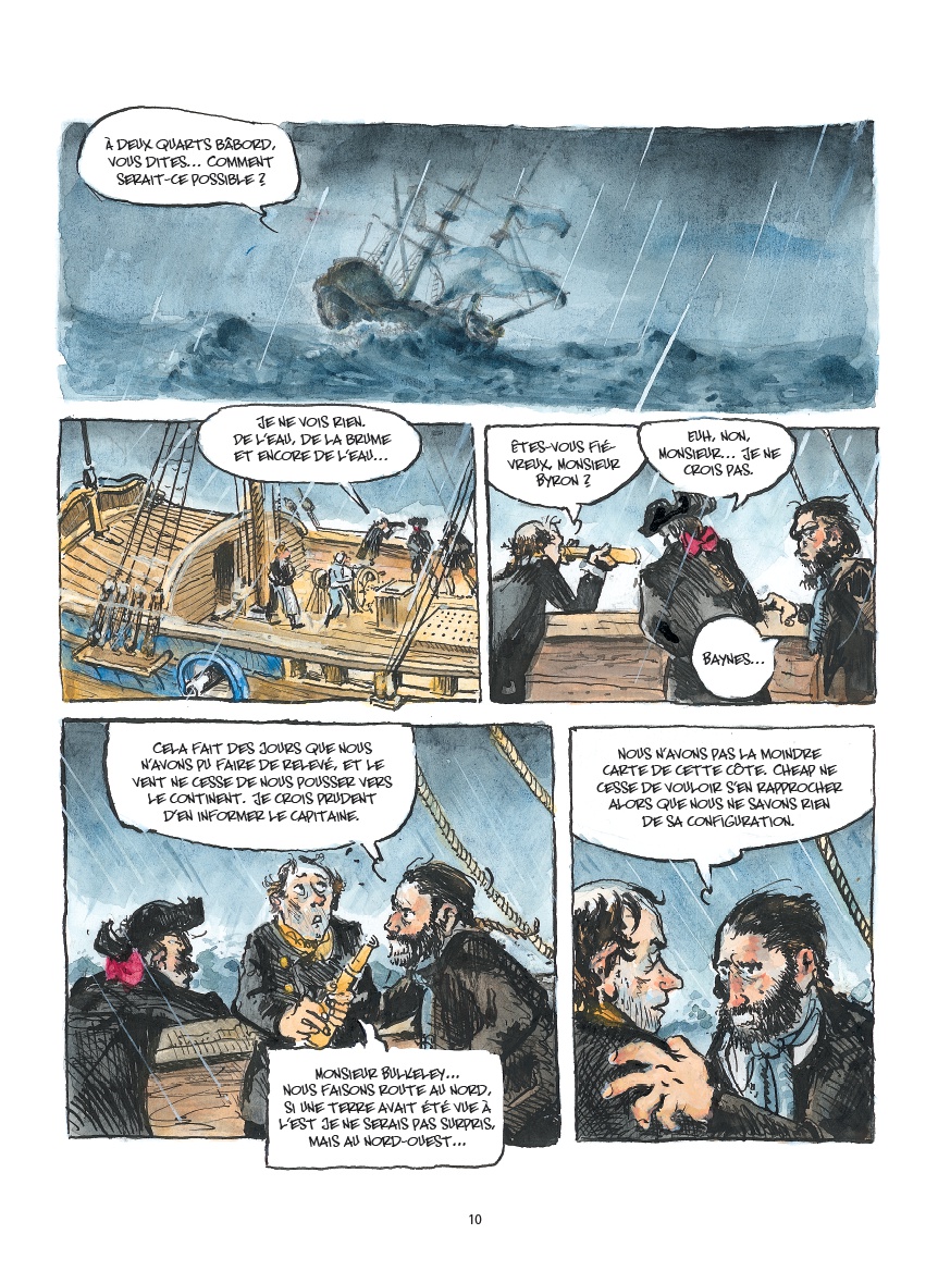 Après avoir raconté l’histoire de l’escadre du Commodore Anson, les auteurs se penchent sur le destin tragique d’un des navires, le Wager, d’après les souvenirs de John Byron, aspirant à bord du bateau et l’un des rares survivants. Un grand récit historique au souffle épique.