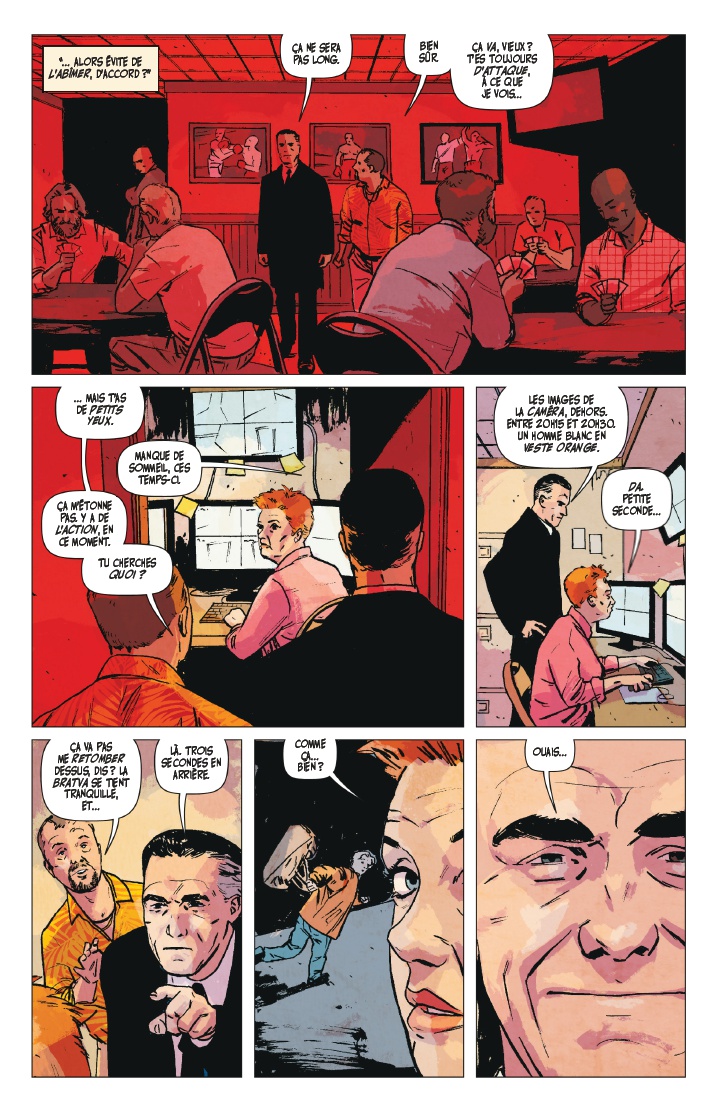 Dès les premières pages, Newburn évoque une parenté évidente avec Criminal, le comics polar par excellence par Ed Brubaker et Sean Phillips ; au point qu’il est étonnant que cet album soit édité en français par Urban Comics et non par Delcourt (quoiqu’il y ait déjà eu une exception avec la réédition de Sleeper en 2022). Car Newburn est un polar extrêmement classique où un personnage énigmatique, Easton Newburn, navigue entre la police et les mafias new-yorkaises non pas à vue mais avec dix coups d’avance (Newburn 2021, #1-8). On ne saura jamais trop rien de Newburn, même au terme de ces huit premiers épisodes, si ce n’est qu’il rend étonnamment autant service à la police qu’aux familles mafieuses qui paient cher son entregent. Le personnage est froid, calculateur et aussi doué d’esprit qu’arme à la main. C’est la caricature d’un vieux détective privé trop parfait, à qui tout réussit et personne ne résiste. Pour l’instant du moins, car l’histoire débute lorsque celui-ci s’adjoint les services d’une jeune femme, Emily Star, amenée à devenir sa coéquipière. Il est certes appréciable de voir enfin Chip Zdarsky œuvrer dans un registre autre que super-héroïque mais on repassera pour l’originalité. D’autant plus que si le dessin et la couleur sont très bons, ils rappellent inévitablement Criminal et tous ces polars dans la même veine puisque Jacob Phillips en est le coloriste attitré. Bref, c’est un bon premier album mais dont ni le scénario, ni le dessin ne m’ont paru apporter de réelle nouveauté au genre.Le 13/03/2023 à 19:07:50