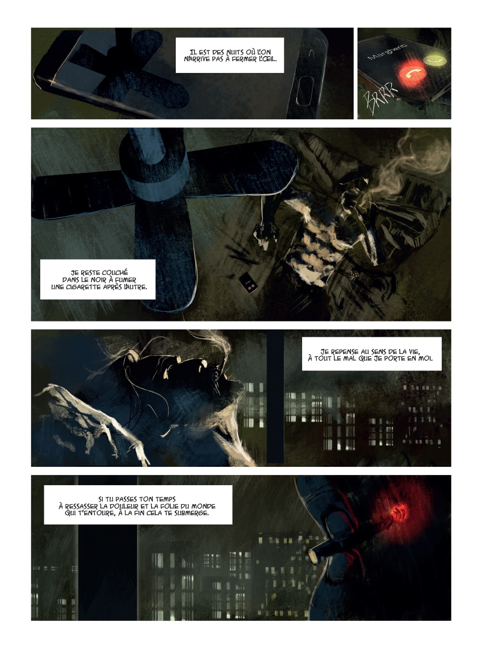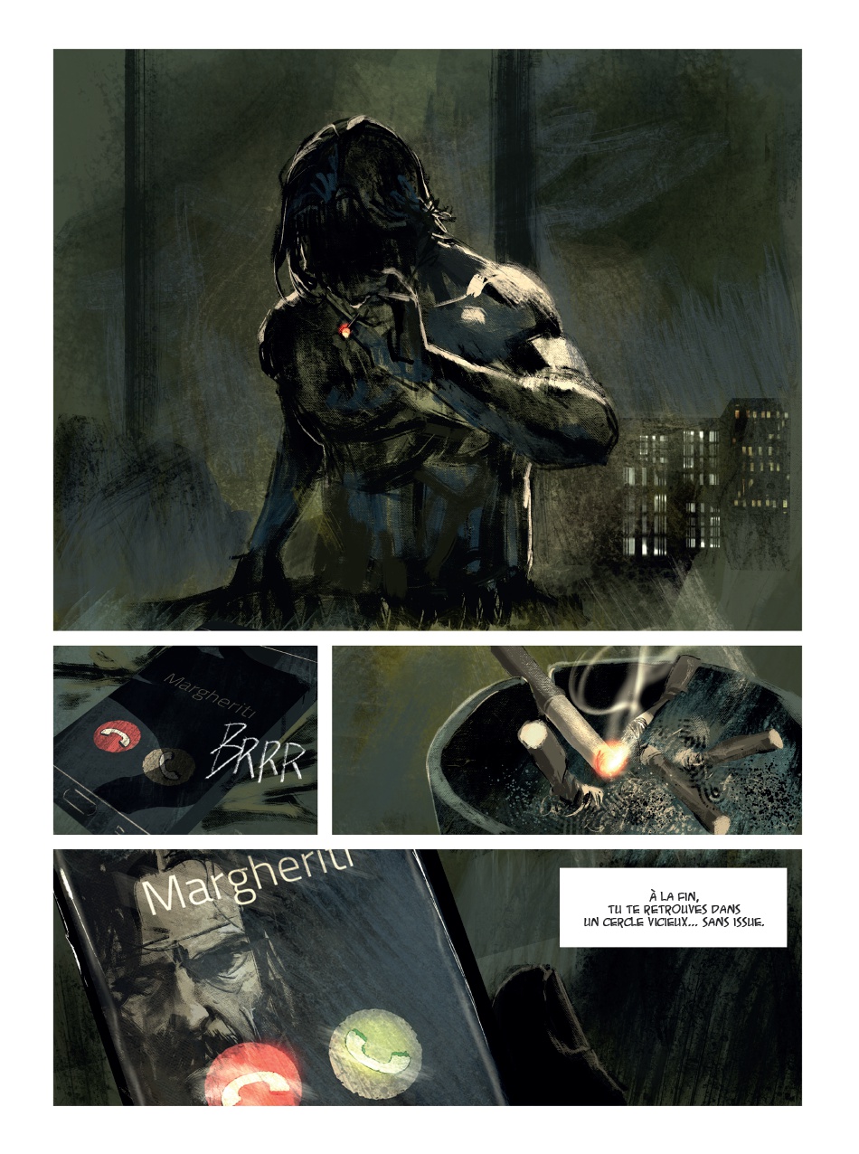 J'observe toujours avec intérêt les albums édités chez Mosquito. En effet, cet éditeur a une ligne éditoriale principalement tournée vers l'Italie où il le don pour nous dénicher des pépites. Pour ces "Nuits romaines", c'est le dessin d'Alessandro Manzella qui a particulièrement attiré mon attention. J'ai adoré le graphisme proposé par Manzella, tout en effets impressionnistes, qui retranscrit à merveille l'ambiance poisseuse et humide des banlieues romaines où se déroule l'action. L'histoire est très noire et distille un malaise permanent jusqu'au twist final que je n'avais pas vu venir (quoi qu'il est très logique en relisant le livre). 90 planches implacables.Le 13/03/2025 à 19:42:59