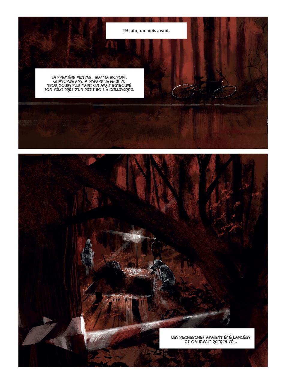 Les nuits romaines sont assez réputées. Jim pourrait en dire quelque chose (voir sa magnifique série complète). Pourtant, elles ne sont pas toujours aussi bénéfiques surtout quand des meurtres d'enfants se produisent ce qui est l'objet de cette BD polar. Cela introduit notre principal personnage Flavio, enquêteur de métier mais assez désabusé par la vie, qui va mener ses investigations jusqu'au bout pour retrouver le meurtrier. Oui, nous avons droit en l’occurrence à un polar italien avec tous les codes du genre. On notera surtout un graphisme assez pictural qui donne dans l'art. J'ai regretté surtout une colorisation assez sombre et dépressive sur l'ensemble de l'album. Cela manque singulièrement de clarté. Par contre, on peut dire que ce dessin est tout à fait adapté à ce genre de récit assez torturé qui mène le lecteur sur des pistes difficiles au point de ne pas en deviner la conclusion. Je peux dire que j'ai été plutôt bluffé par ce polar sans prétention et avec ce style de graphisme assez gothique. C'est plutôt ce que j’appellerai une bonne surprise. Bref, la collection Mosquito a encore frappé fort avec ce titre d'auteurs qui n'ont jamais encore publié en France. C'est manifestement à découvrir mais pas à mettre en toutes les mains.Le 16/06/2025 à 15:41:15