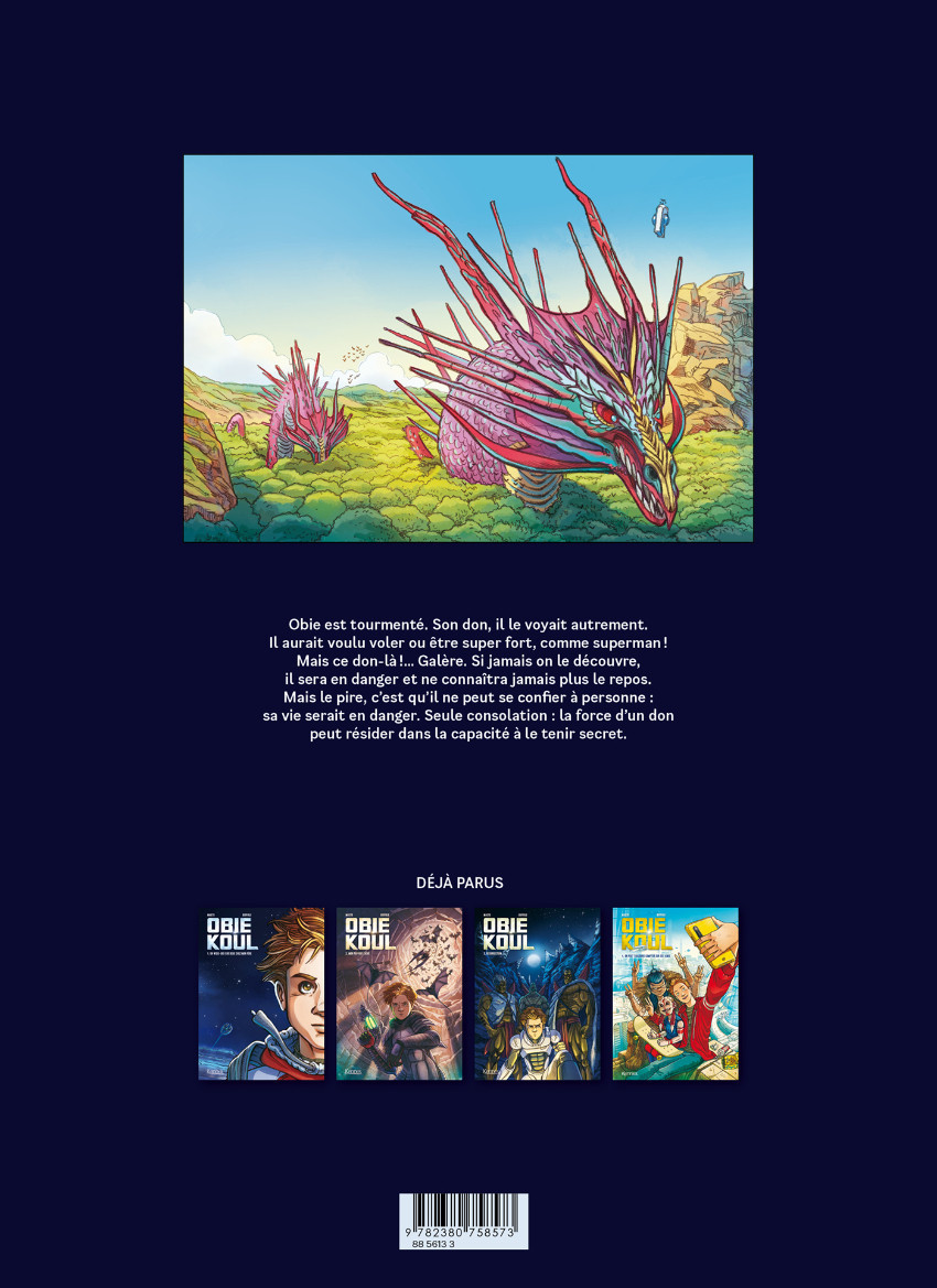 Résumé: Obie est tourmenté. Son don, il le voyait autrement. Il aurait voulu voler ou être super fort comme superman ! Mais ce don-là !... Galère. Si jamais on l'apprend, il sera en danger et ne connaîtra jamais plus le repos. Il a une énorme envie de se confier à sa mère. Mais même à sa mère, c'est impossible. Peut-il se confier à son père ? Pas sûr. À son grand-père, l'empereur ? Il ne sait pas. Ima, le vieux sage demande à Obie de ne parler de ce don à personne, même pas à lui. Nous avons tous un don, lui dit-il, et notre don ne doit pas toujours être révélé. Au contraire, sa force peut résider dans notre capacité à le tenir secret.