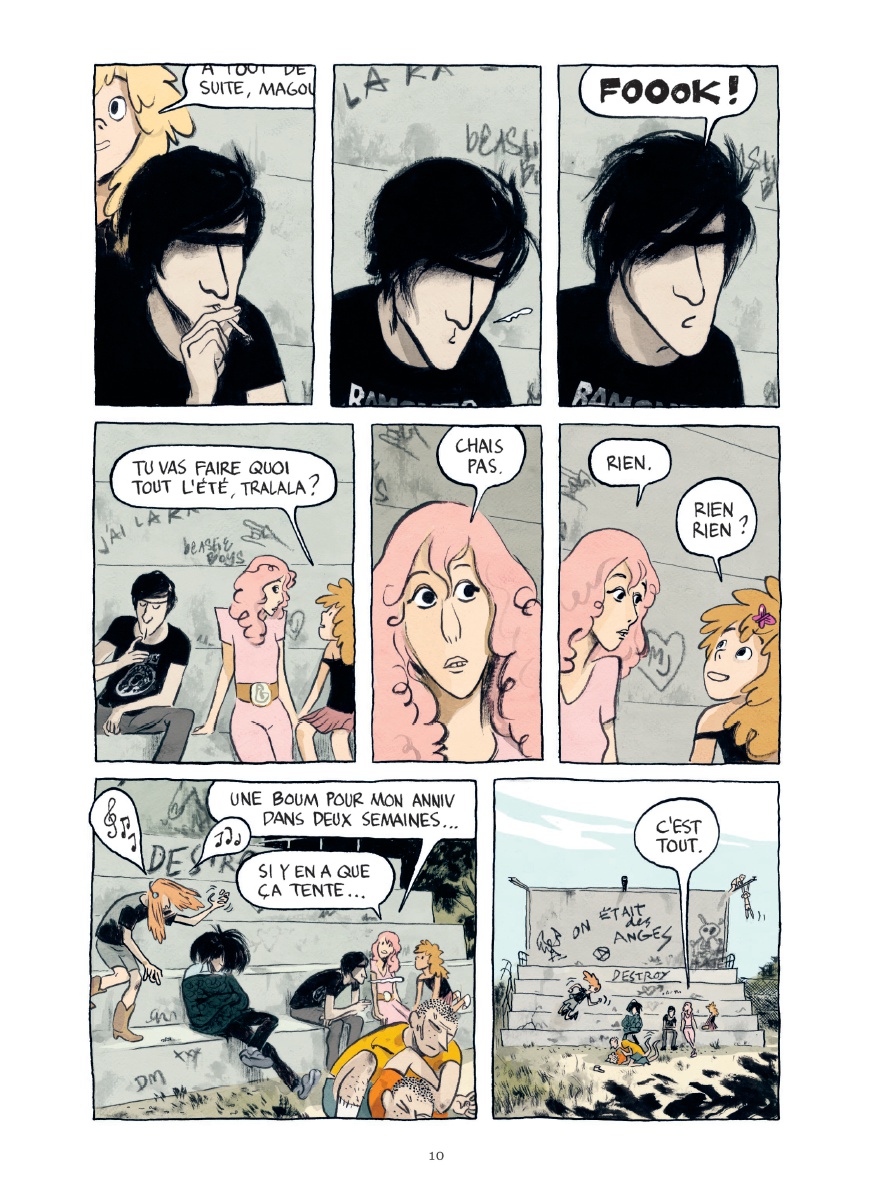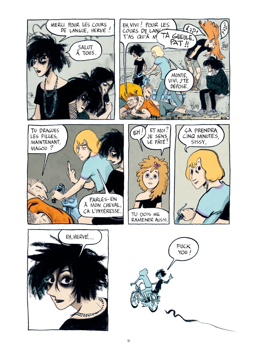 Justesse des situations, humour des dialogues... À se demander si Anne-Caroline Pandolfo n'a pas connu certains des huit ados ! Tout comme le beau dessin charbonneux de Terkel Risbjerg semble n'avoir attendu que les Cure et cette mode des années 1980 pour s'épanouir... Grâce à ces excellents raconteurs d'histoires, une seule envie en refermant l'album : vite retrouver cette petite bande. Justement, la suite du diptyque paraît dans l'année !
