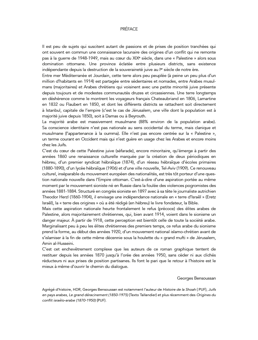 Résumé: C'est donc bien avant 1914 que ce conflit a pris forme à la fois dans le discours des élites arabes, de la communauté juive séfarade et des sionistes d'Europe orientale. C'est cette genèse complexe et séculaire qui est explorée dans cet ouvrage, dans une démarche aussi objective que possible, en collaboration avec l'historien et spécialiste du Moyen-Orient Georges Bensoussan.