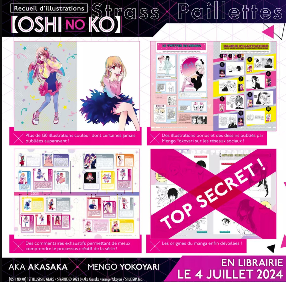 Info édition : Retrouvez le manga culte [Oshi No Ko] dans cet artbook consacré à son univers de strass et de paillettes. Découvrez plus de 130 illustrations couleur réalisées par Mengo Yokoyari qui apporte de nombreux commentaires sur son processus de création. Explorez les prémices de la série à travers de nombreux croquis préparatoires et le storyboard du premier chapitre. uepren r chapitre. Vous en apprendrez plus sur la genèse du manga dans une longue interview croisée entre Aka Akasaka et Mengo Yokoyari. Un chapitre exclusif complète cet ouvrage indispensable aux fans de la série !